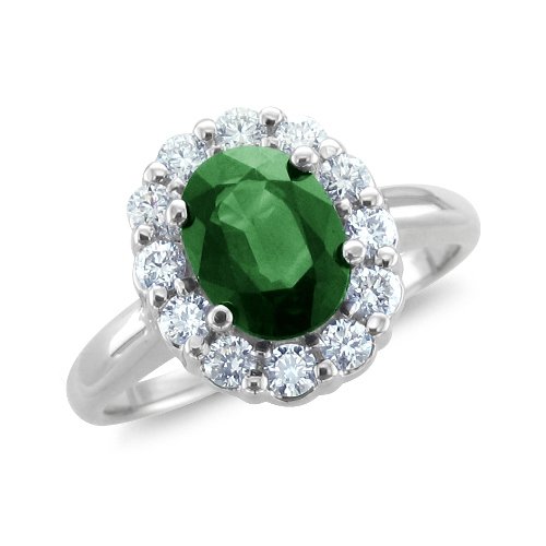 Natural Emerald and Diamond Engagement Ring in 18k White Gold. This Emerald and Diamond Royal Engagement Rings is inspired by Princess Diana Sapphire Engagement Ring, and now the Kate Middleton's Engagement Ring. Princess Diana Sapphire Engagement Ring is a 18 carat oval shaped natural sapphire surrounded by dazzling round brilliant cut diamonds.