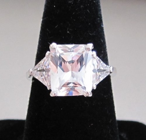 Ladies Fashion Ring with Emerald & Triangular Shape Cubic Zirconia: Size 7 Silver Tone Features